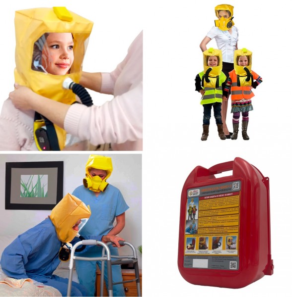 Самоспасатель с принудительной подачей воздуха «Шанс»-П предназначен для индивидуальной защиты органов дыхания, зрения и головы от 1,5 лет, дыханием и с нарушением ритма дыхания от токсичных продуктов горения (в том числе от монооксида углерода) и других опасных факторов при эвакуации из задымленных помещений во время пожара, а также от опасных аварийных химических веществ. Самоспасатель поставляется в удобном пластиковом футляре.