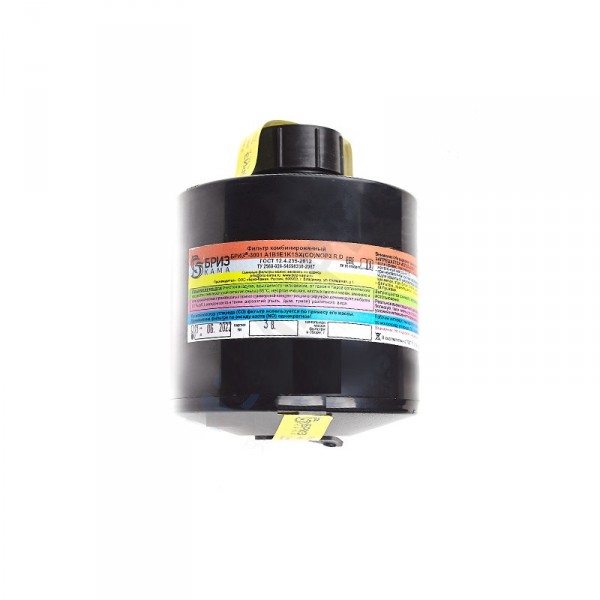*зависит от интенсивности и условий применения СИЗОД в состав которого входит фильтр (от концентрации вредных веществ, температуры и влажности воздуха, содержания кислорода в воздухе зоны применения фильтра, легочной вентиляции пользователя и т.д.) и может отличаться от установленных значений как в большую сторону, так и в меньшую. Дальнейшее использование фильтра A2В2Е2К2SX(CO)NOР3 R D для защиты от монооксида углерода (СО) запрещено, если при взвешивании перед использованием масса фильтра превышает первоначальную массу, указанную на этикетке фильтра на 15±1,5 г. После использования фильтра (если он не полностью отработал свой ресурс и возможно его повторное применение) рекомендуется: отвернуть фильтр от маски (лицевой части), закрыть верхнюю и нижнюю горловины фильтра (колпачком и заглушкой соответственно), протереть корпус фильтра от пыли и прочих загрязнений и уложить фильтр вместе с лицевой частью в сумку для хранения СИЗОД. При появлении в подмасочном пространстве лицевой части (маски) СИЗОД, в составе которого применяется фильтр «БРИЗ®-3001», постороннего запаха и/или затруднения дыхания необходимо немедленно покинуть опасную зону и произвести замену фильтра новым аналогичной марки и класса защиты. Дополнительная информация