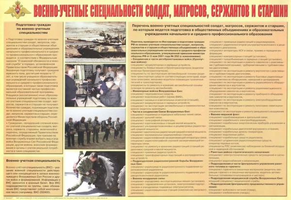 Плакат военно-учетные специальности солдат матросов сержантов и старшин
