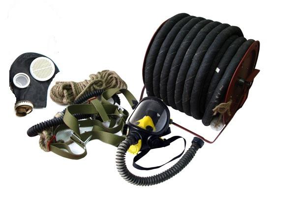 3. УСТРОЙСТВО И ПРИНЦИП РАБОТЫ3.1 Двухканальный противогаз ПШ-20РВ-2 отличается от одноканального наличием двух лицевых частей, двух страховочных поясов и двух воздуховодов, что обеспечивает одновременную работу в противогазе двух человек. Каждый воздуховод имеет шланг длиной 20 м. Оба шланга присоединены к воздуходувке через тройник: один – постоянно, другой– съёмный с помощью резьбового соединения. 3.2 Противогаз ПШ-20РВ-2 можно использовать как одноканальный с длиной шланга 20 м или 40 м, установив на резьбовой конец тройника заглушку и удлинив в последнем случае сигнально-спасательную верёвку. 3.3 Герметичность резьбовых соединений воздуховода обеспечивается резиновыми прокладками. 3.4 В положении транспортирования и хранения тарой для упаковки противогаза ПШ-20РВ-2 служит барабан и сумка. Внутрь барабана укладывают: У противогаза ПШ-20РВ-2: два полиэтиленовых мешка с лицевыми частями и руководством по эксплуатации, один страховочный пояс в сборе с трубками, рукоятку воздуходувки. На барабан у всех противогазов наматывают в два слоя постоянный шланг. На штуцер шланга навинчивают гайку и заглушку с завязками для крепления к щеке барабана. В сумку укладывают смотанный в бухту съёмный шланг и страховочный пояс в сборе с трубками. 3.5 Чистый воздух ручной воздуходувкой забирается за пределами загрязнённой зоны и по шлангам подаётся под лицевую часть, создавая под ней небольшое избыточное давление, благодаря чему обеспечиваются достаточно комфортные условия для дыхания, и исключается возможность подсоса загрязнённого воздуха. Выдох и сброс избыточного воздуха производится через клапан выдоха лицевой части. Подача воздуха регулируется изменением частоты вращения рукоятки. 3.6 Для повышения безопасности работы служит страховочный пояс с сигнально-спасательной верёвкой. 4. МЕРЫ БЕЗОПАСНОСТИ ПРИ ПОДГОТОВКЕ ИЗДЕЛИЯ И ИСПОЛЬЗОВАНИИ4.1 К работе с противогазом допускаются лица, не имеющие медицинских противопоказаний, прошедшие инструктаж по технике безопасности и практическое обучение. Каждый работающий в противогазе должен знать рост своей лицевой части. 4.2 Противогаз должен быть технически исправным, а со времени даты последнего испытания страховочного пояса, клейменной на накладке ремня, должно пройти не более 12 месяцев. 4.3 Перед началом работы убедиться, что шланг опирается на скобу ремня предназначенной для этого гайкой, а не арматурой соединительной трубки, иначе при работе возможна разгерметизация стыка. 4.4 Во время работы необходимо следить, чтобы шланг и верёвка не скручивались, не запутывались и не были зажаты какими-либо предметами. 4.5 На всё время пребывания работающего в противогазе в загрязнённой зоне необходимо обеспечивать непрерывную подачу чистого воздуха при помощи воздуходувки, наблюдение за работающим, связь с ним при помощи сигнально-спасательной верёвки и готовность к оказанию помощи. 4.6 При повреждении воздуходувки воздух может забираться самовсасыванием, что даёт возможность работающему выйти из опасной зоны. 4.7 Целесообразно при работе в сложных условиях иметь наготове второй противогаз для оказания помощи работающему непосредственно в опасной зоне. 4.8 Эксплуатация противогаза допускается только в установленном режиме работы с учётом специфики трудового процесса. |