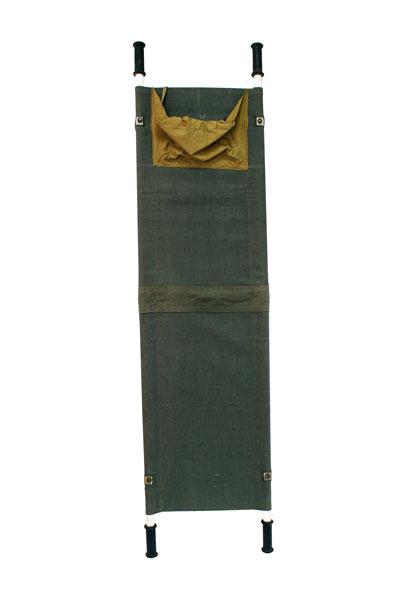 Конструктивно носилки санитарные представляют собой: каркас из алюминиевого сплава, на которые натянуто полотнище из полульняной парусины с водоупорной и противогнилостной пропиткой СКПВ, на концах брусьев имеются резиновые ручки. Носилки складываются продольно. Фиксация носилок в разложенном состоянии осуществляется с помощью двух распорок с замками (крючками). |