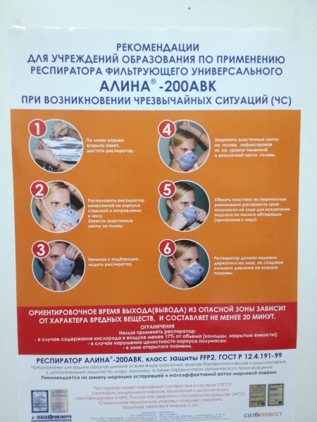 Рекомендации для учреждений образования по применению респиратора фильтрующего Алина 200АВК.