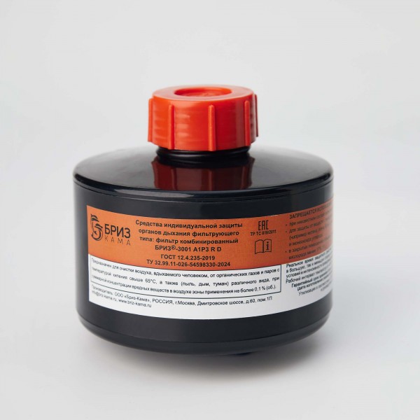 Фильтры комбинированные «БРИЗ-3001» A1P3 R D имеют резьбовое соединение (Кр 40х4 ГОСТ 8762-75) и предназначены для применения в составе различных фильтрующих средств индивидуальной защиты органов дыхания производства ООО «Бриз-Кама» (с маской «БРИЗ®-4301М(ППМ)» категории 2, маской «БРИЗ®-4301(ППМ)» категории 3, маской «БРИЗ®-4306(ЭВР)» категории 2 исполнения II, шлем-маской ШМП класс 1 категории 2) для очистки вдыхаемого человеком воздуха от химически опасных и вредных токсичных веществ в том числе аварийно-химически опасных веществ ингаляционного действия (АХОВИД), а также различных аэрозолей, которые могут присутствовать в воздушной среде зоны применения данных фильтров в виде паров, газов и аэрозолей.