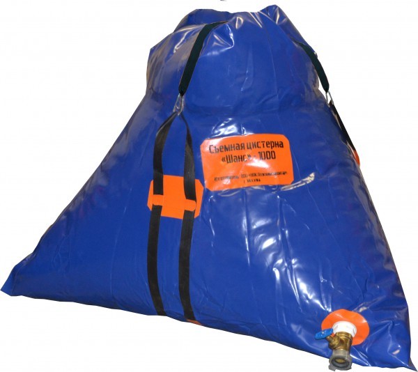 Съемная цистерна «Шанс» (противопожарный резервуар) представляет собой герметичный мешок из армированного ПВХ - материала в форме усеченного правильного тетраэдра с заливной горловиной, которая снабжена герметизирующим запором типа "Фастекс".