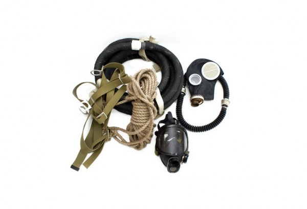 3. УСТРОЙСТВО И ПРИНЦИП РАБОТЫ3.1 Противогаз состоит из лицевой части с двумя последовательно соединенными гофрированными соединительными трубками, к которым прикреплен армированный шланг длиной 10 м. 3.2 У противогаза ПШ-1С на другом конце шланга навинчен фильтр. 3.3 Противогаз комплектуется поясом страховочным, состоящим из ремня, лямок и сигнально-спасательной веревки. На левой лямке через угольник закреплены соединительные трубки, а на ремне посредством скобы и гайки – шланг. Сигнально-спасательная веревка привязана со стороны спины к лямкам пояса. 3.4 Противогаз ПШ-1С смотанный в бухту шланг, на штуцере которого навинчена гайка, страховочный пояс с закрепленными на нем соединительными трубками, а также лицевые части, руководство по эксплуатации и фильтр, упакованные в полиэтиленовый мешок, укладываются в сумку. 3.5 При работе в противогазе воздух для дыхания всасывается самим работающим через шланг. При этом всасывающий конец шланга должен находиться в зоне пригодного для дыхания воздуха. Выдох производится через клапан выдоха лицевой части. 3.6 Для повышения безопасности работы служит страховочный пояс с сигнально-спасательной веревкой. 4. МЕРЫ БЕЗОПАСНОСТИ ПРИ ПОДГОТОВКЕ ИЗДЕЛИЯ И ИСПОЛЬЗОВАНИИ4.1 К работе с противогазом допускаются лица, не имеющие медицинских противопоказаний, прошедшие инструктаж по технике безопасности и практическое обучение. Каждый работающий в противогазе должен знать рост своей лицевой части. 4.2 Противогаз должен быть технически исправным, а со времени даты последнего испытания страховочного пояса, клейменной на накладке ремня, должно пройти не более 12 мес. 4.3 Перед началом работы убедиться, что шланг опирается на скобу ремня предназначенной для этого гайкой, а не арматурой соединительной трубки, иначе при работе возможна разгерметизация стыка. 4.4 Во время работы необходимо следить, чтобы шланг и верёвка не скручивались, не запутывались и не были зажаты какими-либо предметами. 4.5 На всё время пребывания работающего в противогазе в загрязнённой зоне необходимо обеспечивать связь с ним при помощи сигнально-спасательной верёвки и готовность к оказанию помощи. 4.6 Целесообразно при работе в сложных условиях иметь наготове второй противогаз для оказания помощи работающему непосредственно в опасной зоне. 4.7 Эксплуатация противогаза допускается только при указании режимов труда и отдыха с учётом специфики трудового процесса. |